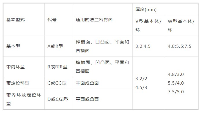三、纏繞墊片結(jié)構(gòu)形式及代號和使用法蘭類別: