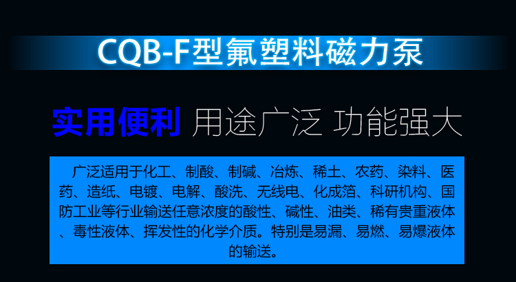 功能上:由于以上的結(jié)構(gòu)設計,材料配置,CQB-FJ系列磁力泵,可輸送含任意濃度的腐蝕性液體、高溫強酸強堿等。我公司氟塑料磁力泵、襯氟磁力泵是耐酸堿磁力泵和耐腐蝕磁力泵的氟塑料泵廠家。