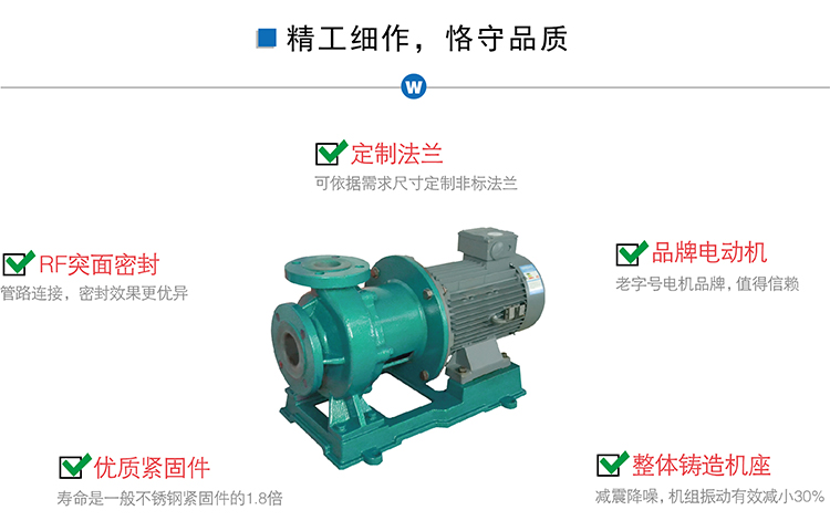 功能上:由于以上的結(jié)構(gòu)設(shè)計,材料配置,CQB-FJ系列磁力泵,可輸送含濃度的腐蝕性液體、高溫強(qiáng)酸強(qiáng)堿等。