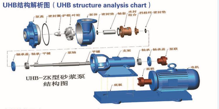 UHB-ZK型系列砂漿泵又稱脫硫泵、壓濾機(jī)泵,屬于懸臂式單級(jí)單吸離心泵,是輸送含有細(xì)顆粒的腐蝕性介質(zhì)的,其過流部件采用鋼襯超高分子量聚乙烯制造,具有較強(qiáng)的耐腐蝕性、卓越的耐磨性、抗蠕變性(耐環(huán)境應(yīng)力開裂),同時(shí)采用金屬基體結(jié)構(gòu),提高了產(chǎn)品承壓能力。