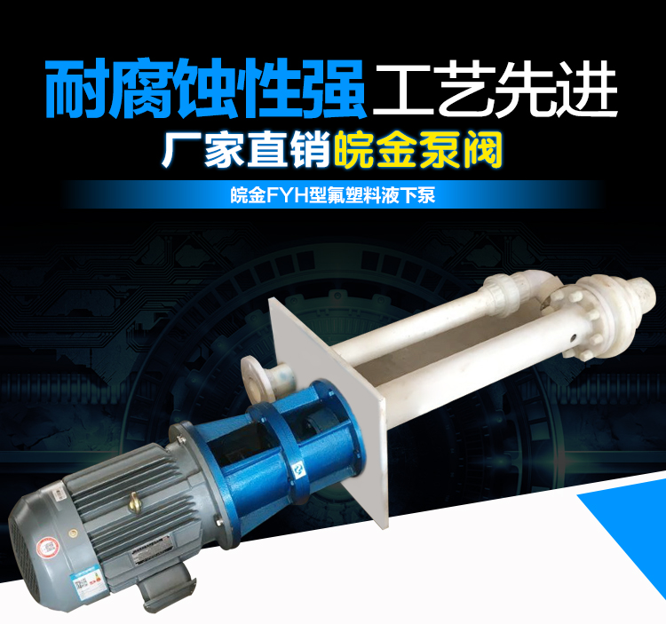 FYH氟塑料液下泵是葉輪和傳動軸等受力部分為金屬骨骼,外包氟塑料(緊襯和松襯工藝)或工程塑料,扭矩強勁,耐腐蝕性優(yōu)越。軸承和其他滑動部件均采用陶瓷,可用來輸送絕大多數(shù)化學(xué)液體。泵體全部浸沒在液體中,沒有倒灌和泄露的煩惱。耐腐蝕液下泵中,耐腐蝕性質(zhì)較好的液下泵產(chǎn)品種類。氟塑料材質(zhì)耐腐蝕性能,幾乎耐所有酸堿,即使是濃硫酸,濃硫酸液下泵(氟塑料材質(zhì))也可輕松應(yīng)對。
